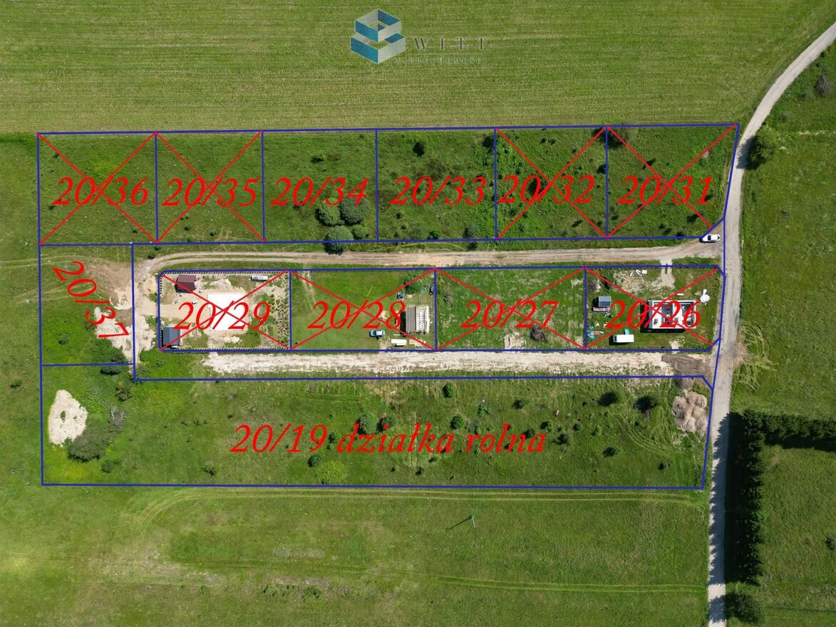 - działki 20/33 o pow. 1001m2, 20/34 o pow. 1002m2 dostępne w cenie 120 zł/m2.